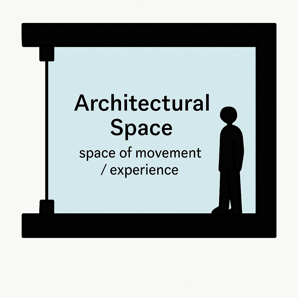 ここで述べる空間理解は、現代の建築設計実務において広く共有されている用法を念頭に置いたものであり、記号論的・制度的・都市論的な空間概念を代表するものではない。 ↩